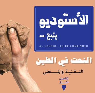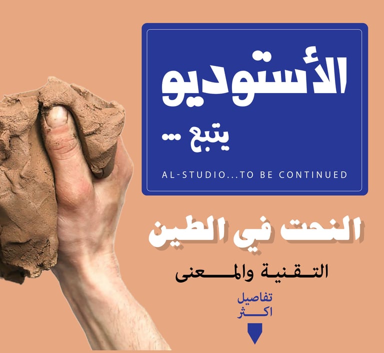 يُعلن "الاستوديو...يتبع" عن فتح باب الالتحاق والتسجيل في الورشة الرابعة بعنوان "النحت بالطين – التقنية والمعنى"، والتي ستبدأ بتاريخ 15-07-2025 ولمدة شهر، وتشمل 8 لقاءات بواقع لقاءين أسبوعيًا، مدة كل لقاء 3 ساعات. تُعقد الورشة في مساحة "الاستوديو...يتبع"، بإشراف الفنان حمادة مداح.