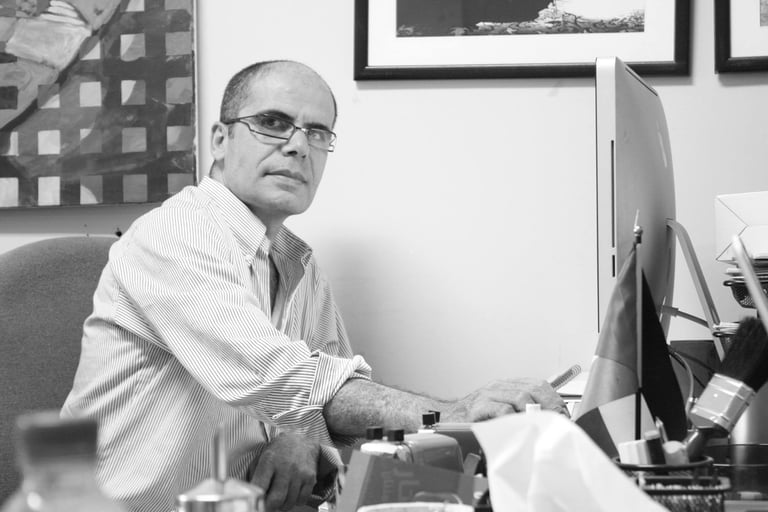 Amous is a Palestinian artist born in Jerusalem in 1968. He began drawing at an early age, inspired by Palestinian artists, and later studied mathematics and physics at Bethlehem University, graduating in 1990. In 1991, he received a diploma in illustration and graphic design from Amideast. He worked as a graphic designer with institutions including UNICEF, the World Bank, and the Palestinian National Theatre. His early career in children’s book illustration marked a shift toward imagination and storytelling, moving away from earlier militaristic themes. He served as Executive Director of Al-Mahatta Gallery in Ramallah (2010–2014) and has led Al Mada Association for community-based arts since 2015.