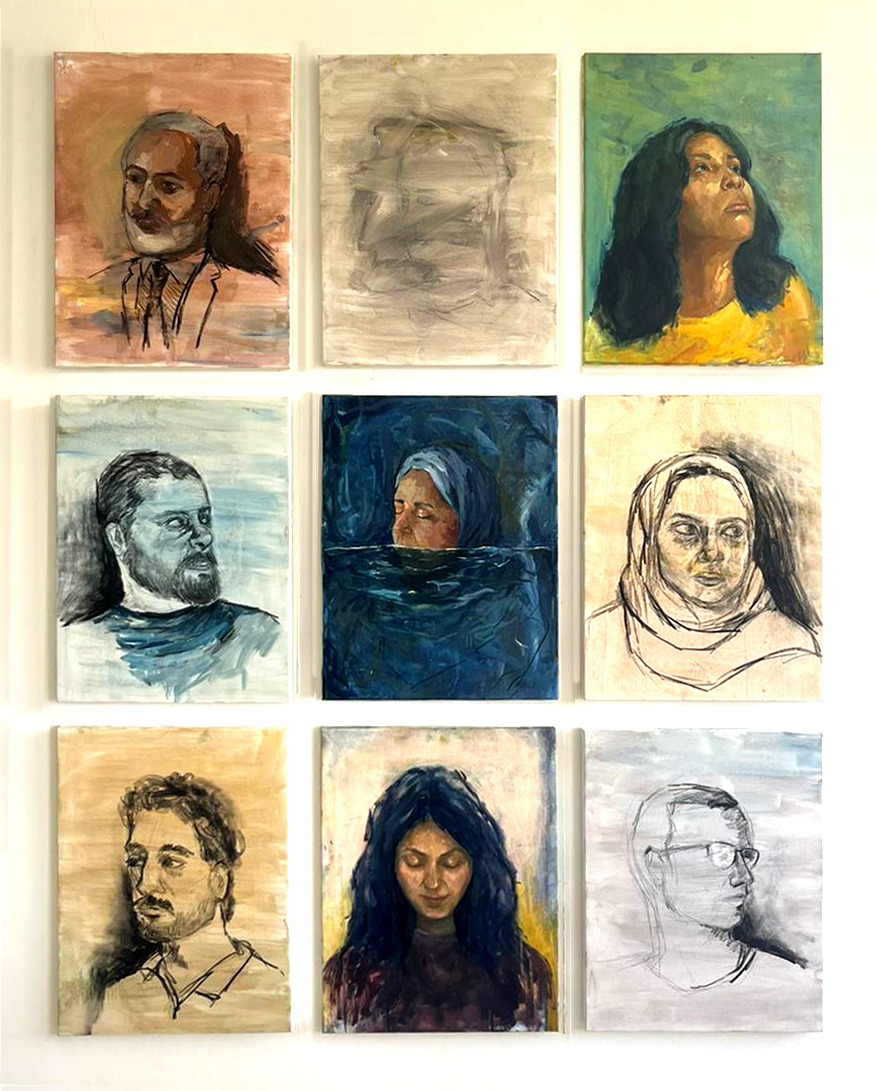 At the peak of the experience, I found myself opening up to the other inherent in the work of my colleagues at “Al-Studio TBC.”, like a window overlooking other worlds, through which I sought to understand their unique visual languages and weave them into my own works. These paintings are not portraits of my colleagues, but rather visual dialogues that invite viewers to explore the complexities of identity and the dynamic interaction between the artist and the subject.